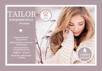 Tailor – звонкое имя новой коллекции. Наш Tailor – тактильно очень приятный микрошеннил с легким меланжевым переплетением. Современные реалии не оставляют выбора, хочется окунуться во что-то мягкое, уютное, умиротворяющее, отвлечься от повседневной суеты в комфортной домашней обстановке, потому что «дома и стены помогают».